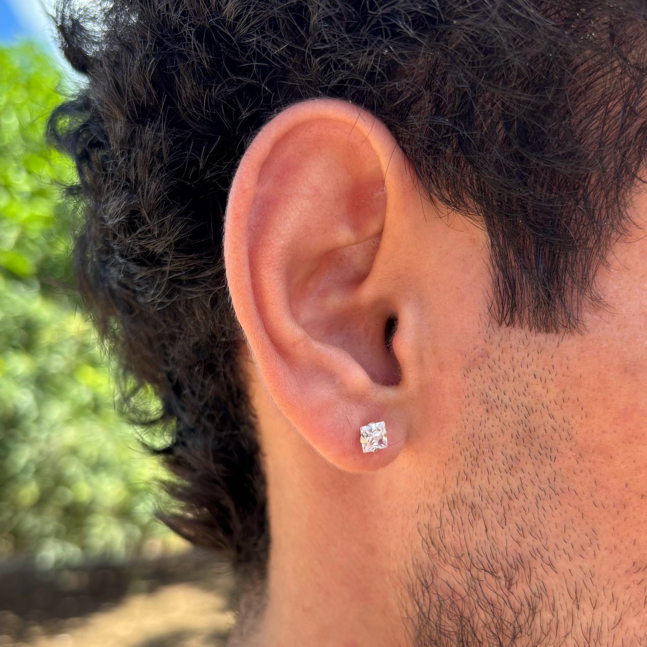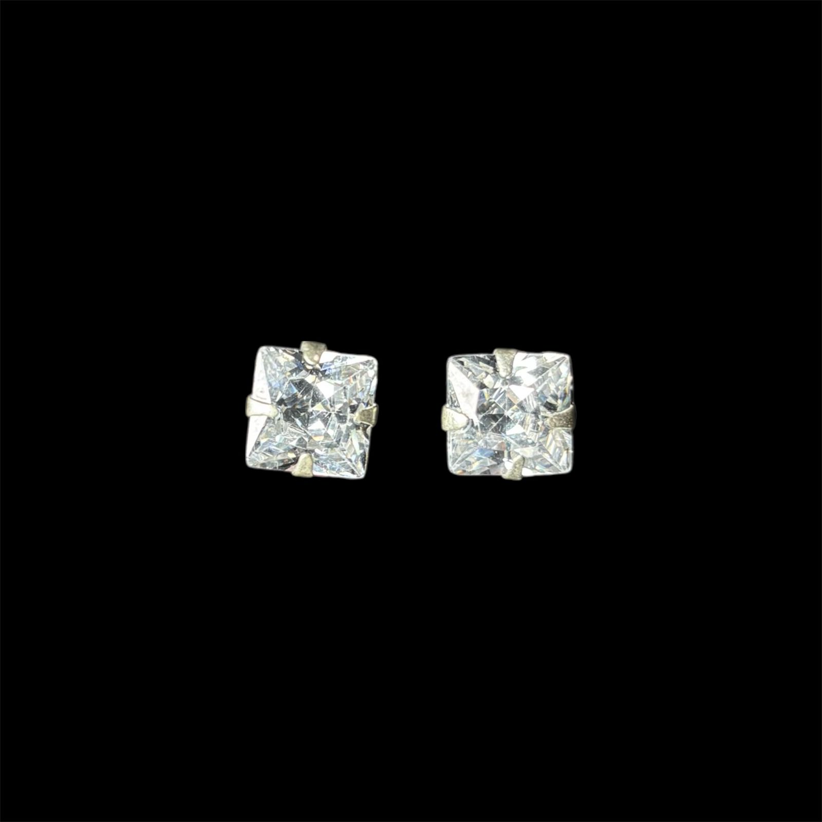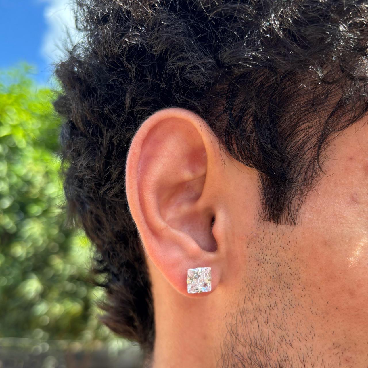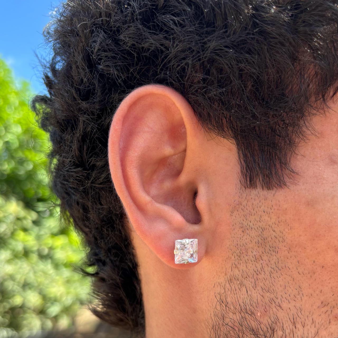 Brinco Ponto De Luz Quadrado Cristal em Prata 925