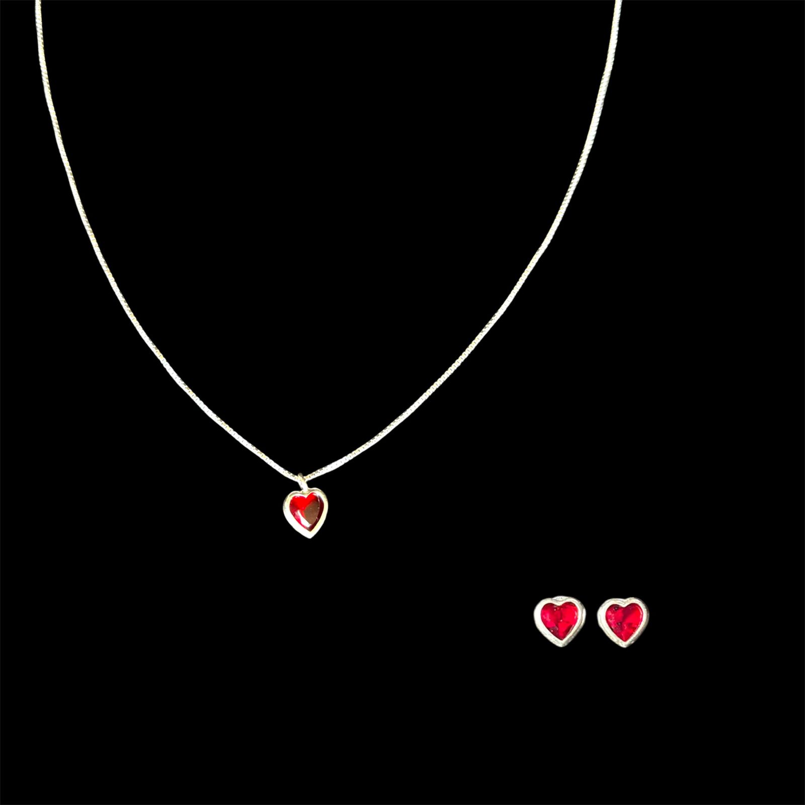 Desperte o seu lado romântico com o Conjunto Coração Cravação Inglesa, uma peça deslumbrante feita em prata 925 de alta qualidade. Este conjunto inclui um elegante colar e brincos, todos adornados com zircônias vermelhas que capturam a luz de maneira única, proporcionando um brilho inigualável.